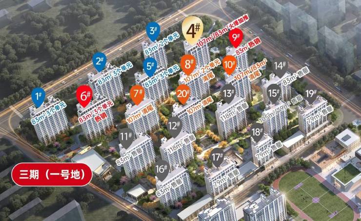【根底信息】:万科金域悦府3期是继万科金域悦府一、二期之后又一晋级力作,项目总占地约6.6万平方米,总建约15.2万平方米,容积率约2.3,全体绿化率不低于35%。总规划20栋小高层,1581户,项目选用分批交给。第一批交给为3.1期的17#、18#、19#三栋楼,已于2024年1月30日交给,二批次15#、16#两栋楼已于2024年9月28日交给,三批次13#、14#号楼将于2024年12月30日交给。现在主力在售4#、6#、9#楼83㎡抢手两室、8#楼107㎡三室双卫。